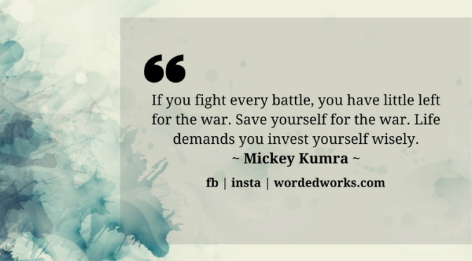 If you fight every battle, you have little left for the war. Save yourself for the war. Life demands you invest yourself wisely.