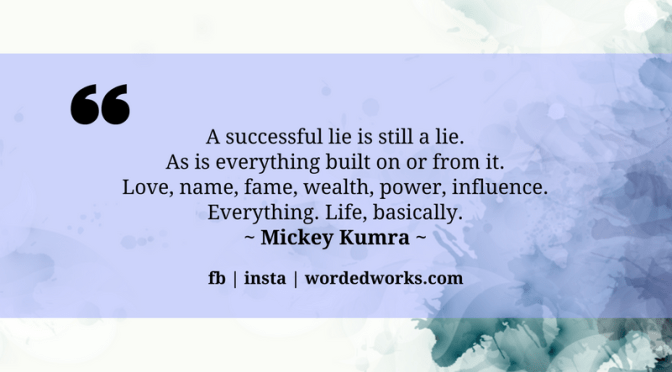 A life built on top of lies is a lie. Lies can be lived, but they cannot be enjoyed. They might please, but they won’t satisfy. Because they’ll always bring along, at least to the sufficiently aware, a sense of having cheated it to the achievement. A sense of something other than you, something unreal, being responsible for your win. Try standing out. Try standing real.