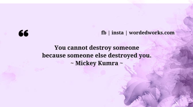 You cannot destroy someone because someone else destroyed you.