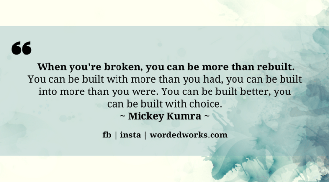 When you’re broken, you can be more than rebuilt. You can be built with more than you had, you can be built into more than you were. You can be built better, you can be built with choice.